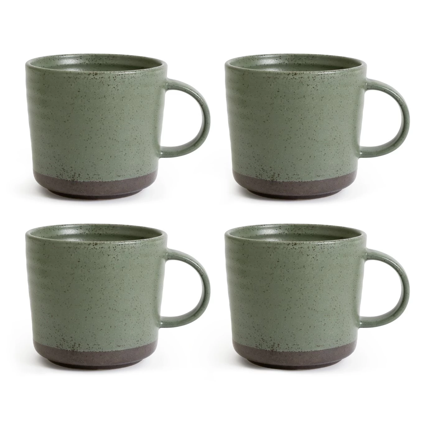 4 soothing cuppas coming right up. Our set of 4 sage mugs have a tactile yet subtle ripple texture. The contrasting dipped effect at the base adds to the calm modern design. In speckled stoneware, they’re a stylish choice. And they’re robust enough to stay looking good for years. That’s a great start.