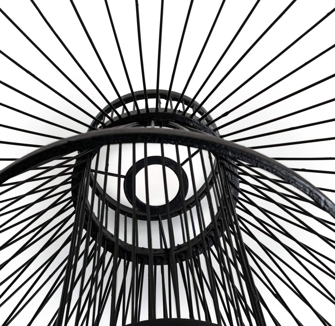 Three tiers for this stunning shade. With its contemporary cage design this black bamboo pendant shade demands centre stage. And there’s never a dull moment. When the light shines through the 3 woven canopies you can enjoy your own shadow show. Very theatrical. A bold look for a lounge, bedroom, or dining room. Dramatically dark, naturally exotic.